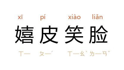 ⒈ 形容嬉笑不严肃的轻浮样子。也作「嘻皮笑脸」。