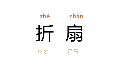⒈ 一种可以折叠的扇子,用竹、木、象牙等做骨架,上面蒙上纸或绢。
