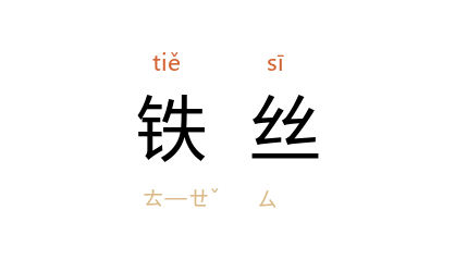 ⒈ 用铁拉制成的线状成品,根据粗细分成许多型号,如10号铁丝,3号铁丝。