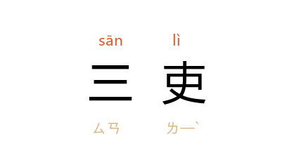 ⒊ 指唐杜甫的著名诗作《新安吏》、《潼关吏》、《石壕吏》。文学史上与他的《新婚别》、《垂老别》、《无家别》合称“三吏三别”。