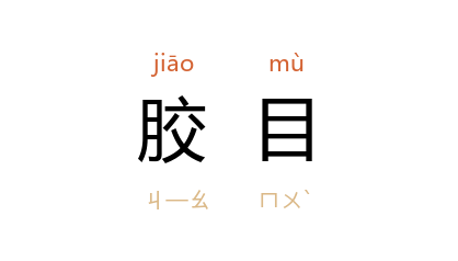 引《吕氏春秋·赞能》:“桓公 果听之,於是乎使人告 鲁 曰:‘ 管夷吾,寡人之讎也,愿得之而亲加手焉。’ 鲁君 许诺。乃使吏鞹其拳,胶其目,盛之以鴟夷,置之车中。”汉 刘向 《说苑·杂言》:“管夷吾 束缚胶目,居槛车中,自车中起为仲父,则其遇 齐桓公 也。”南朝 梁 沉约 《佛记序》:“未有不知厥路,莫辨伊人,胶目闇践,自与理合。”