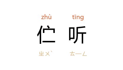 引清 蒲松龄 《聊斋志异·婴宁》:“有巨石滑洁,因据坐小憩。俄闻墙内有女子,长呼‘ 小荣 ’,其声娇细。方佇听间,一女郎由东而西。”宋之的 《草地颂歌》二:“你渴望追逐翻飞的蝴蝶,佇听鸟儿的啁啾。”