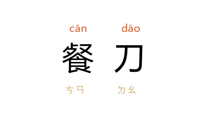 ⒉ 用餐时使用的刀子。一般指西式餐饮使用的食具。