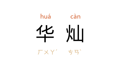 引宋 周密 《乾淳岁时记·中秋》:“禁中是夕有赏月……灯烛华灿,竟夕乃止。”明 沉德符 《野获编·玩具·四川贡扇》:“聚骨扇,自 吴 製之外,惟 川 扇称佳,其精雅则宜士人,其华灿则宜艷女。”冰心 《寄小读者》十八:“日本 小孩子的衣服,比我们的华灿,比较的引人注意。”