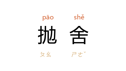引元 马致远 《汉宫秋》第二折:“妾情愿和番,得息刀兵,亦可留名青史。但妾与陛下闈房之情,怎生抛捨也。”明 高明 《琵琶记·散发归林》:“最苦生离难抛捨,未知再会何时也。”《白雪遗音·玉蜻蜓·显魂》:“你高堂大厦都抛捨,到如今,只落得朦朧夜影入帘笼。”
