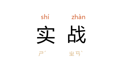例如:「他有实战经验。」、「纸上谈兵三年,不如实战一役。」