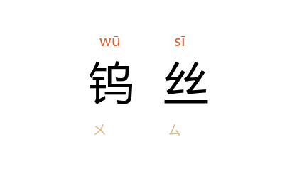 ⒈ 钨经冶炼所抽成的细丝,熔点和硬度极高,可做为灯泡中的灯丝。