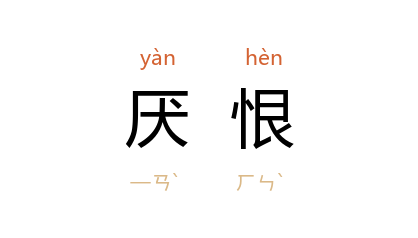 引郭沫若 《司马迁发愤》:“司马迁 对于这位本来不大喜欢的官气十足的朋友,增加了新的厌恨。”叶圣陶 《遗腹子》:“文卿 先生看了看她,带着厌恨的声气说,‘既然这样说,等你再生一个就是了。’”丁玲 《莎菲女士的日记》:“我厌恨我不喜欢的人们的荩献。”