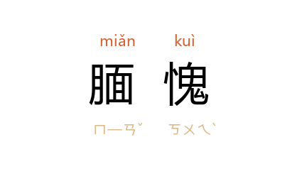 引唐 常衮 《谢端午赐衣及器物等表》:“徘徊渥恩,靦愧朝列。”前蜀 杜光庭 《封李真人告词》:“而芝泥露篆,愿表勤诚,循省冲襟,良多靦愧。”宋 余靖 《免转工部侍郎状》:“内揆空踈,第深靦愧。”