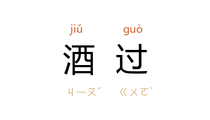 引《晋书·周顗传》:“屡以酒过,为有司所绳。”《宋书·颜延之传》:“延之 性既褊急,兼有酒过,肆意直言,曾无遏隐。”清 严有禧 《漱华随笔·先中翰》:“予尝与山人语,温温耳;而觉其中有不能自吐之块垒,被酒輒发。 中翰 心知其非酒过也,惟真感真,惟真忘真,不亦信夫。”