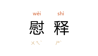 引《汉书·谷永传》:“慰释皇太后之忧愠,解谢上帝之谴怒。”颜师古 注:“释,散也。”宋 苏辙 《答陈师仲书》:“手足舞蹈,以自慰释。”明 沉德符 《野获编·外郡·南宋陵寝》:“初,梓宫来归,有 王之道 者,请斵神櫬之下者视之,然后奉安。时议不从,预製衮冕纳之於槨。盖此举姑以慰释人心,一辨真伪,则事体便难收拾矣。”