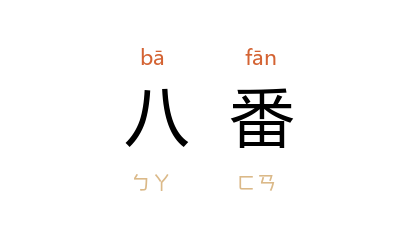 ⒈ 元 代对居住于今 贵州省 贵阳、惠水 一带少数民族的总称。包括 小龙番、大龙番、卧龙番、程番、洪番、方番、石番 和 卢番。元 至元 十六年(1279年)于其地设 八番 罗甸 等军民宣慰使司。