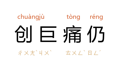 ⒈ 亦作“创鉅痛仍”。谓创伤深重而悲痛长久。参见“创巨痛深”、“创鉅”。