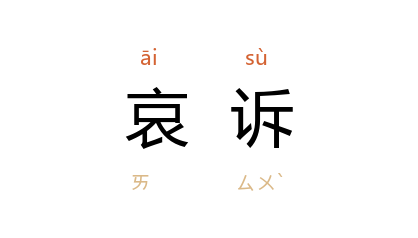 引北齐·颜之推《颜氏家训·风操》:「江南丧哭,时有哀诉之言耳。」唐·杜甫〈瘦马行〉:「见人惨澹若哀诉,失主错莫无晶光。」