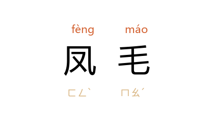 ⒈ 凤凰的羽毛。亦比喻珍贵稀少之物。参见“凤毛麟角”。