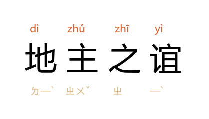 ⒈ 地主,当地的主人。“谊”通“义”。本地主人应尽的义务,指招待外地来客。