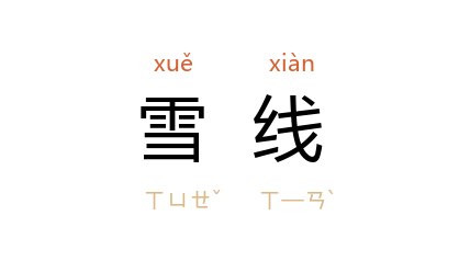⒈ 终年积雪区域的界线。它的高度一般随纬度的增高而降低。赤道附近,雪线约高五千米。两极地区,雪线就是地平线。