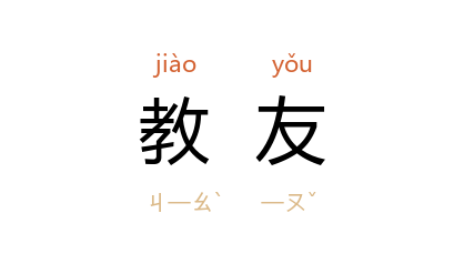 ⒈ 指能给予教导的朋友。称信奉同一宗教的人。亦泛指教徒。