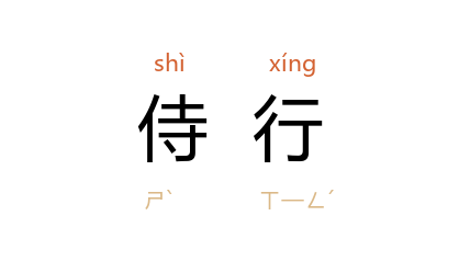 引宋 苏轼 《与程正辅提刑书》之二:“老兄到此……令子几人侍行?”宋 洪迈 《鬼国记》:“他日言於母,乞侍行。”《续资治通鉴·宋高宗绍兴二十五年》:“李光 之得罪也……长子 孟清 、中子 孟醇 皆侍行,死贬所。”