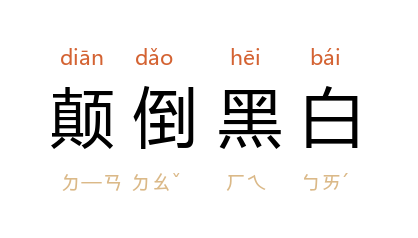 ⒈ 比喻歪曲事实,混淆是非。也作「颠倒是非@@@是非颠倒」。