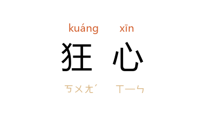 引《后汉书·隗嚣传》:“既乱诸夏,狂心益悖,北攻强胡,南扰劲 越。”《东周列国志》第九回:“齐 世子 诸儿 闻 文姜 将嫁他国,从前狂心,不觉復萌。”