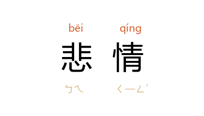 例如:「夫妻离异所带来的悲情,让他久难释怀。」