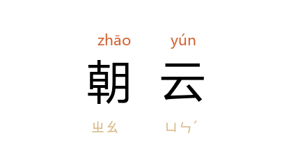 ⒊ 人名。宋苏轼之妾。本为钱塘妓,姓王,苏轼官钱塘时纳为妾。初不识字,后从轼学书,并略通佛理。轼贬官惠州,数妾散去,独朝云相随。