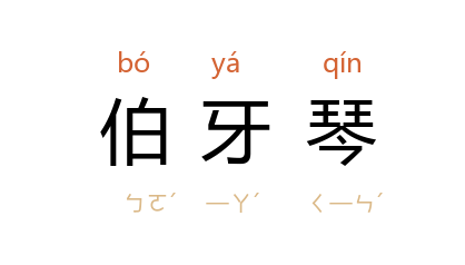 亦省作“伯琴”。 唐 寒山 《三字诗》之四:“泉声响,抚 伯 琴。有 子期,辨此音。”