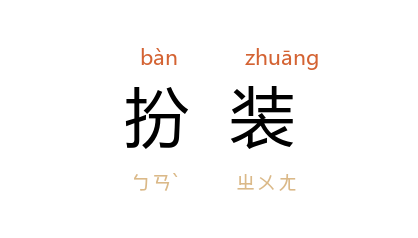 例如:「他扮装成猪八戒,在台前逗人发笑。」