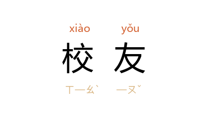 ⒈ 学校的师生称在本校毕业的人,有时也包括曾在本校任教职员的人。