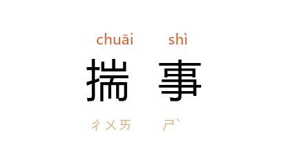 引《韩非子·问辩》:“若其无法令而可以接诈应变生利揣事者,上必采其言而责其实,言当则有大利,不当则有重罪。”《新唐书·奸臣传上·李义府》:“德俭 者, 许敬宗 甥,癭而智,善揣事。”《初刻拍案惊奇》卷三十:“某愚不揣事,私道 李某 善能饮酒,故请命召之。”