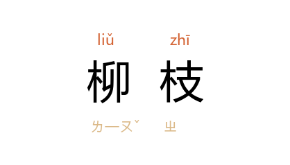 ⒊ 词调名。又称《杨柳枝》。盖由乐府横吹曲《折扬柳》演变而来。有三体:(1)单调,二十八字,四句,句七字。平韵。形似七言绝句,声律较灵活,平仄不拘定。前蜀牛峤《柳枝》词五首即用此调。(2)双调,四十字。上、下片各以七、三、七、三字为句。平韵。前蜀张泌《柳枝》词即三、七、三字为句,共三十二实字;另在第一、二、四句之下各加和声(亦称“和歌”)“柳枝”,共十二虚字,合为四十四字。参阅清万树《词律》卷一。