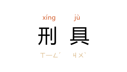 ⒈ 用来拘束犯人、逼问口供或执行刑罚的器具。如手铐、脚镣、笞杖、夹棍、绞架等。