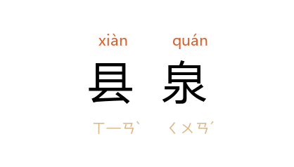 引《管子·地员》:“高陵土山二十施,百四十尺,而至於泉,山之上,命之曰县泉。”郭沫若 等集校引 夏纬瑛 曰:“‘县泉’与 崑崙 之 县圃 同例,当指高山之顶有泉处。”明 刘基 《郁离子·牧豭》:“县泉沃之,湿蘚被焉。”