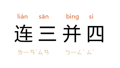 引老舍 《赵子曰》第十九:“赵子曰 一声不发,只连三并四的磕瓜子。”老舍 《二马》第四段三:“李子荣 拉住 马威 的手不放,连三并四的说:‘谢谢你!’”