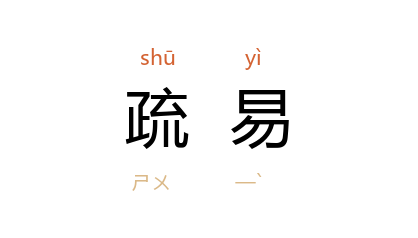 引唐 杜牧 《上池州李使君书》:“僕之所禀,阔略疎易,轻微而忽小。”《资治通鉴·唐懿宗咸通五年》:“虽嘉蹇諤之忠,难逃疏易之责。”
