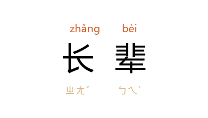 引《二十年目睹之怪现状》第二回:“四十五岁,只怕不便写作‘享寿’……若説那‘得年’、‘存年’,这又是长辈出面的口气。”巴金 《秋》四九:“四爸、五爸,你们不要以为做小辈的就害怕长辈。”