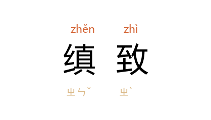 引唐·陆龟蒙〈记锦裾〉:「及谛视之,条叚斩绝,分画一一有去处,非绣分绘,缜致柔美,又不可状也。」清·洪升《长生殿·第三六出》:「呀!你看锦文缜致,制度精工,光艳犹存,异香未散。」