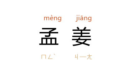 ⒈ 春秋时齐为姜姓,故称齐君之长女为孟姜。亦泛指世族妇女或美貌女子。