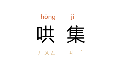 茅盾 《子夜》二:“此时哄集在大餐室里的人们,也渐渐走散,只剩下五六位。”