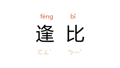引晋 葛洪 《抱朴子·嘉遯》:“逢 比 有令德之罪, 信 布 陷功大之刑。”清 陈田 《明诗纪事辛籤·凌义渠》:“能为 逢 比 者视碎首溅血,仍无异於退食委蛇。”清 谭嗣同 《仁学》七:“而 逢、比、屈原、伯奇、申生 之流,遂衔寃饮恨於万古之长夜,无由别白其美。”