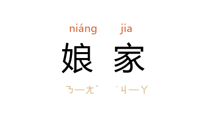⒈ 已婚女子婚前的家。相对于婆家而言。
