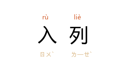 ⒈ 军队用语。出列的或迟到的士兵进入队列。