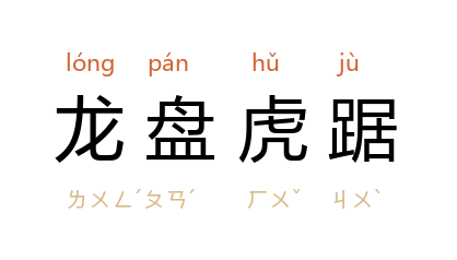 ⒈ 像龙盘绕,像虎蹲踞。语本形容地势宏伟险要。也作「龙蟠虎踞」、「虎踞龙盘」、「虎踞龙蟠」。