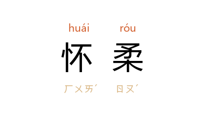 ⒉ 后因以称笼络安抚外国或国内少数民族等为“怀柔”。
