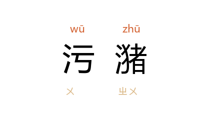 郭沫若 《文艺论集·文学的本质》:“有的又跑到碧绿的汚潴边上去考察,就说水是色清而有臭。”
