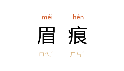 引唐 孙棨 《北里志·颜令宾》:“不堪襟袖上,犹印旧眉痕。”明 高濂 《玉簪记·寄弄》:“一度春来,一番花褪,怎生上我眉痕。”清 龚自珍 《己亥杂诗》之二五四:“眉痕英絶语謖謖,指挥小婢带韜略。”