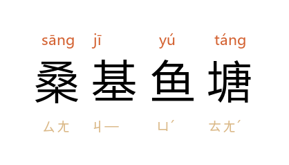 ⒈ 植桑养蚕同池塘养鱼相结合的综合经营方式。“基”指挖地成塘时鱼塘周围堆泥形成的土埂(俗称塘基)。基上种桑,桑叶喂蚕,蚕沙喂鱼,鱼粪肥塘,塘泥肥基,塘基互养,形成良性生态循环。中国长江中下游地区采用较广。类似的综合经营方式还有珠江三角洲一带的蔗基鱼塘。