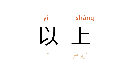 ⒈ 表示品第、数量、级别、位置等在某一点之上。
