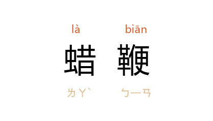 ⒈ 谓以蜡润鞭。比喻外美而中腐。’言外美而中腐,如以败素染紫也。与蜡鞭之説正相似。”参阅 唐 柳宗元 《鞭贾》。
